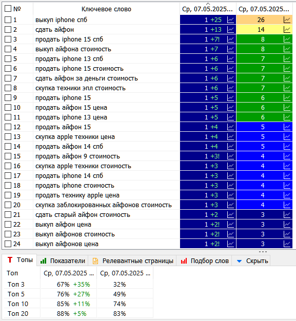 3. Работа над подъемом позиций и далее ежедневное удержание в-Топ-5 по важным коммерческим поисковым запросам.